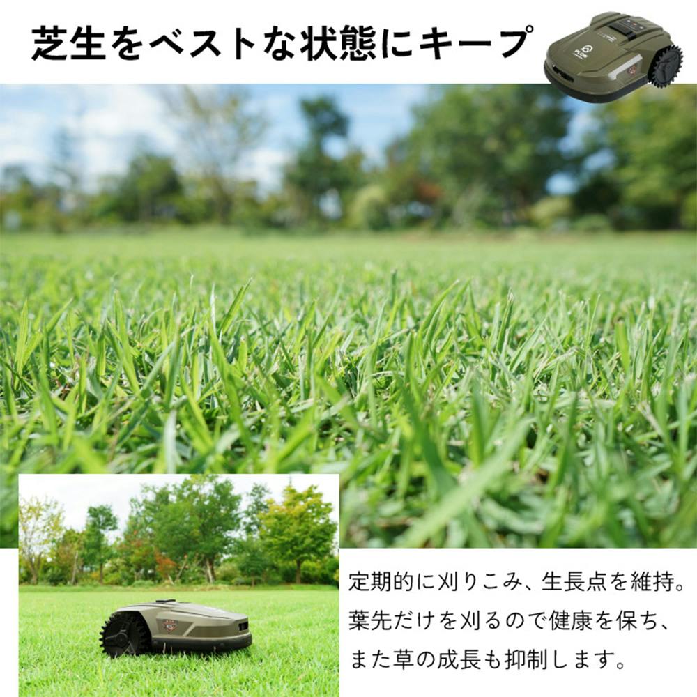 手作業の煩わしさ、炎天下での作業からの解放が叶う、ロボット芝刈機。専用アプリでスケジュール、エリア管理、遠隔操作も可能。