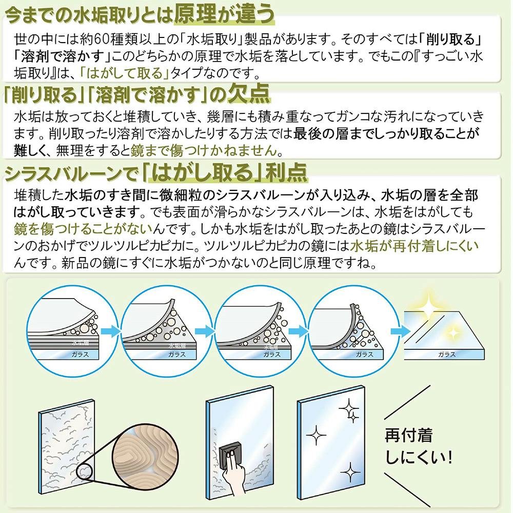 汚れを削りとるのではなく、剥がしとるため下地をいためません。●親水性もあるから汚れの再付着を防ぎます。