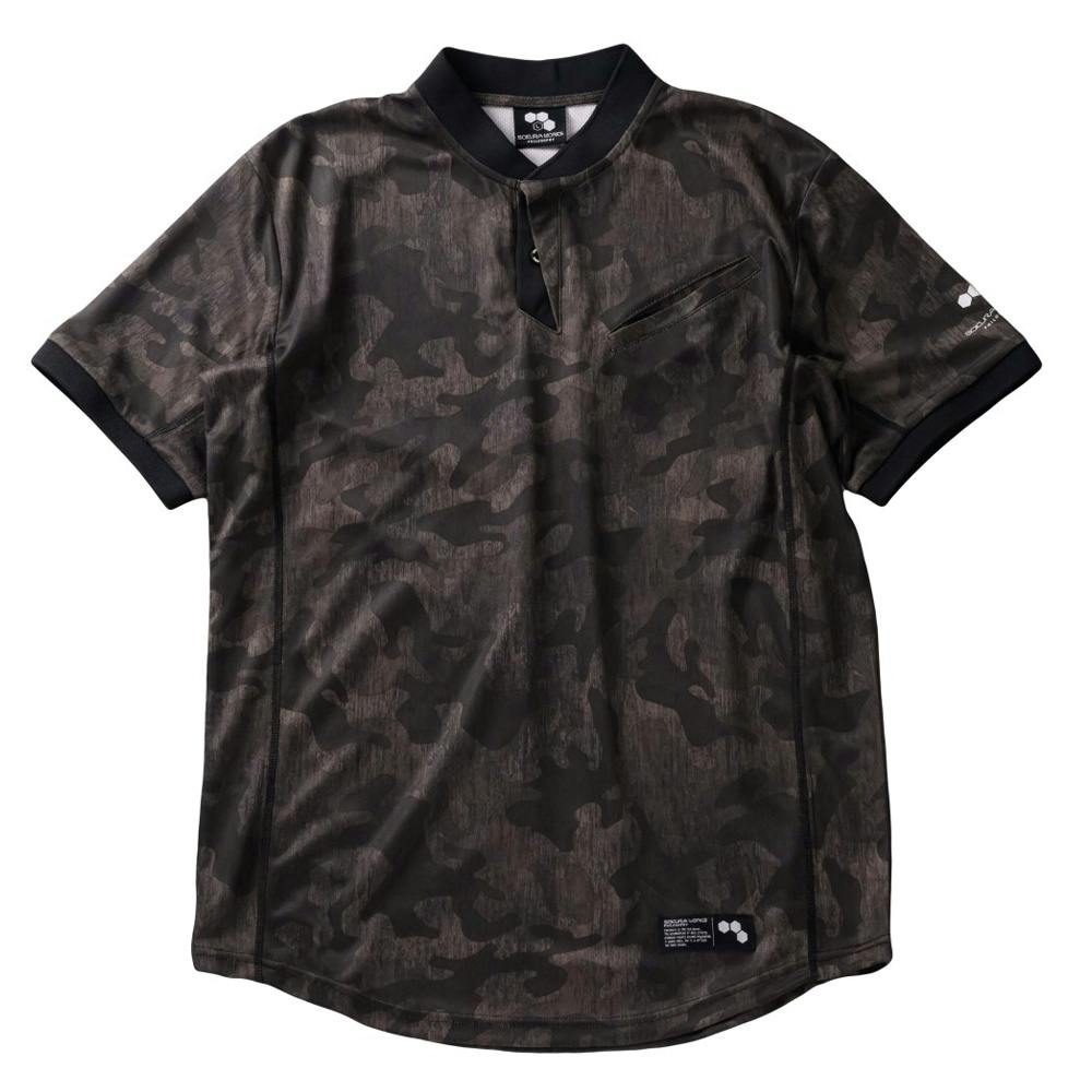 ●モルタル迷彩&バンドカラーがカッコいい吸汗速乾シャツ。●変則的なバンドカラースタイルを採用した半袖ポロシャツ。衿巾の小さなバンドカラースタイルで、首回りの爽快感が特徴。ボディ全面にモルタル迷彩柄を採用し、シックな印象ながら存在感のあるビジュアル。