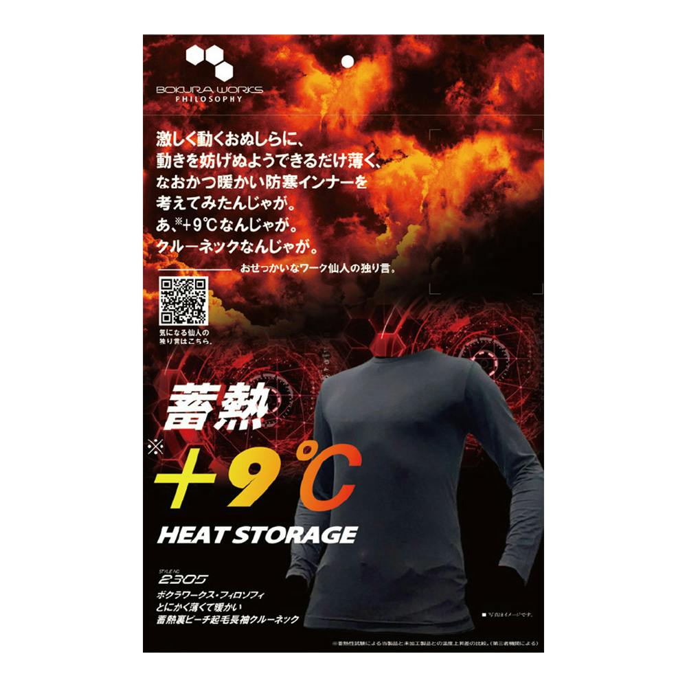 BOKURAWORKS 蓄熱裏ピーチ長袖クルーネック ブラック L