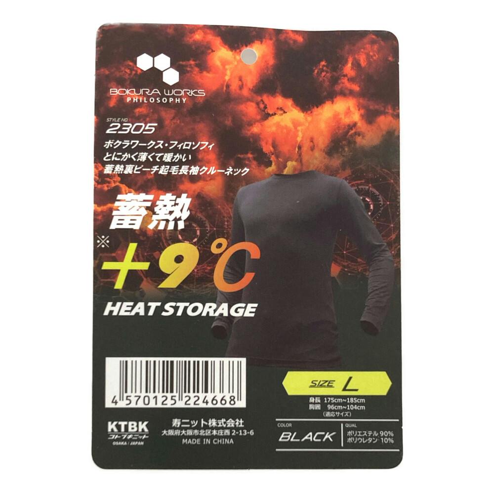 • BOKURAWORKS 蓄熱裏ピーチ長袖クルーネック ブラック L