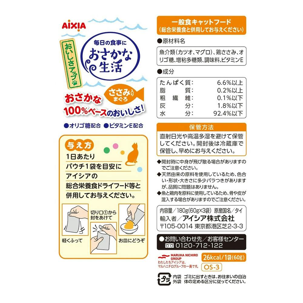 アイシア おさかな生活 ささみ入りまぐろ 60g×3袋