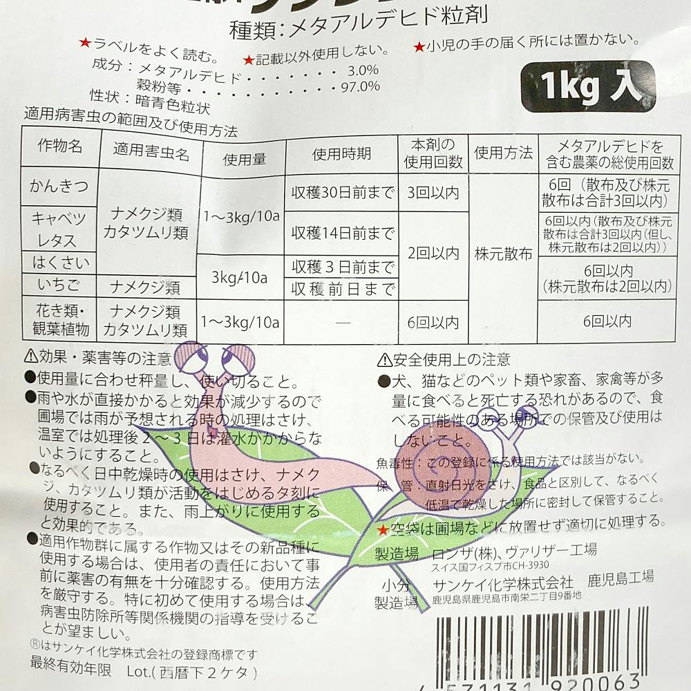 ●殺虫剤●ナメクジにメタ剤●適用病害虫:ナメクジ類、カタツムリ類