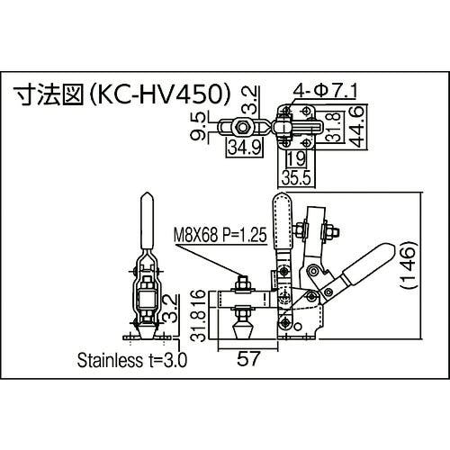 【CAINZ-DASH】大阪角田興業 ステンレス製ハンドル縦型トグルクランプ No.HV450-2S KC-HV450-2S【別送品】