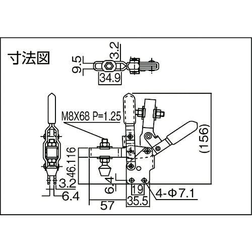 • 【CAINZ-DASH】大阪角田興業 ハンドル縦型トグルクランプ(下方押え型) No.HV451B 締圧力2.25kN KC-HV451B【別送品】