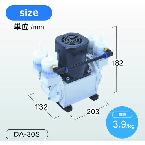 【CAINZ-DASH】アルバック 単相100V ダイアフラム型ドライ真空ポンプ 排気速度24/30 DA-30S【別送品】