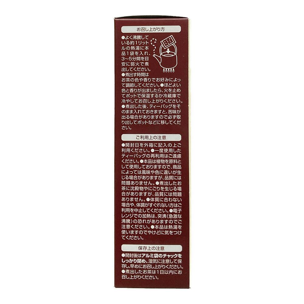 ●よく沸騰している約1リットルの熱湯に本品1袋を入れ、3~5分間を目安に弱火で煮出してください。●ほどよい色と香りが出ましたら、火を止めてポットで保温するか冷蔵庫で冷やしてお召し上がりください。等