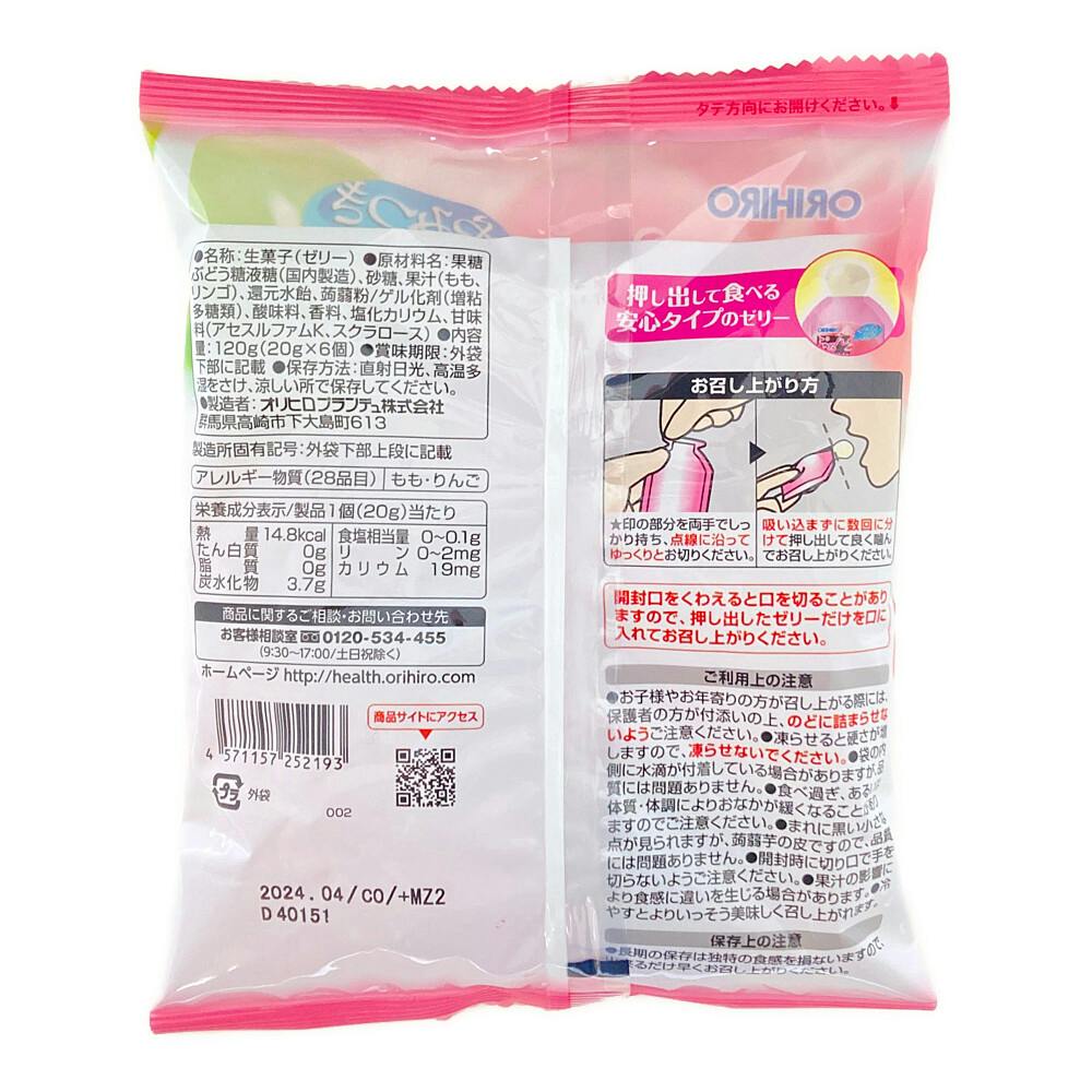 果糖ぶどう糖液糖(国内製造)、砂糖、果汁(もも、リンゴ)、還元水飴、蒟蒻粉/ゲル化剤(増粘多糖類)、酸味料、香料、塩化カリウム、甘味料(アセスルファムK、スクラロース)