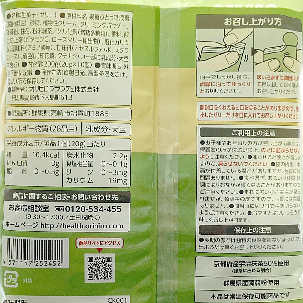 ●押し出して食べる安心タイプのゼリー●おいしく・おなかも・美しく●京都府産宇治抹茶50%使用(抹茶に占める割合)●群馬県産蒟蒻粉使用●本品は常温保存可能商品です