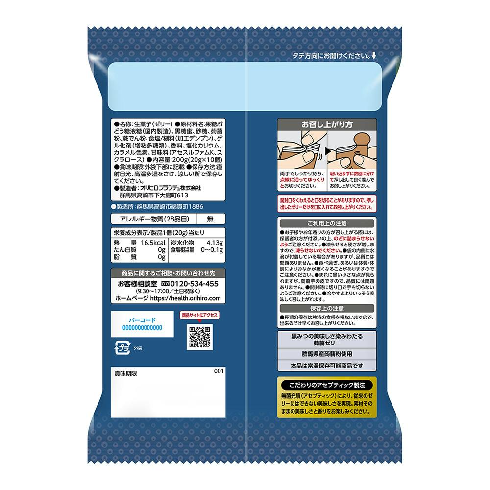 果糖ぶどう糖液(国内製造)、黒糖蜜、砂糖、蒟蒻粉、蕨でん粉、食塩/糊料(加工デンプン)、ゲル化剤(増粘多糖類)、香料、塩化カリウム、カラメル色素、甘味料(アセスルファムK、スクラロース)