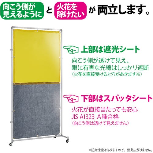【CAINZ-DASH】吉野 遮光火花兼用衝立 接続型 1×2 キャスター足(イエロー×A種シート) YS-12JC-Y-BW【別送品】