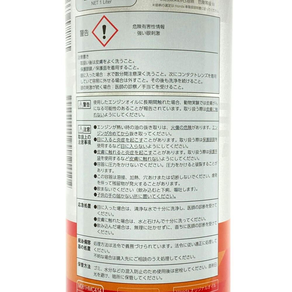 ●Honda オリジナルオイル ●危険有害性情報/強い目刺激