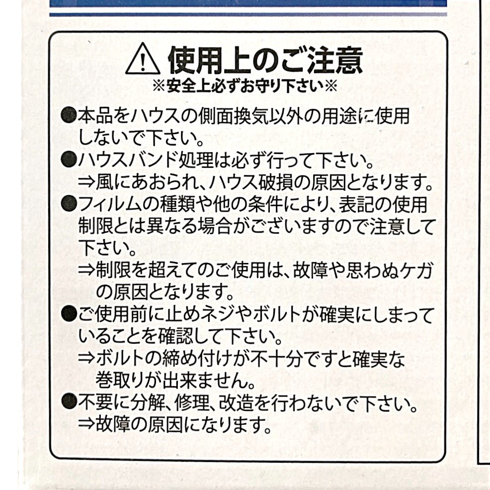 ●奥行:50mまで ●開閉幅:1.0mまで ●巻取トルク:19.6N・m(200kgf・cm)まで ※巻き取りパイプ:直径22mm(板厚1.2mm)、フィルム:PO系フィルム(厚さ0.15mm)の場合