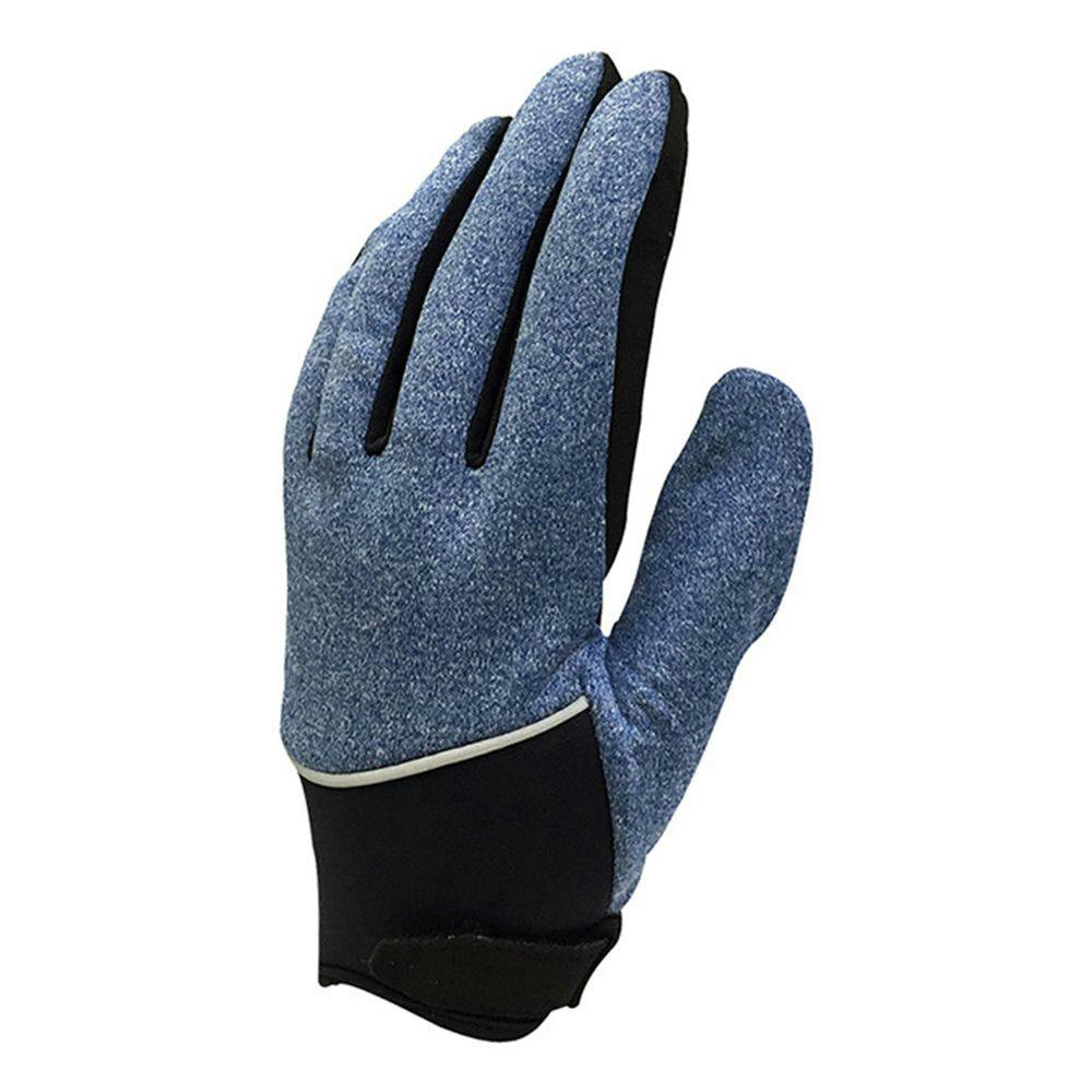伸縮性素材のデニムプリント加工。手首マジック付・シリコン滑り止め加工でグリップ力抜群。手の甲に、反射パイピング使用。