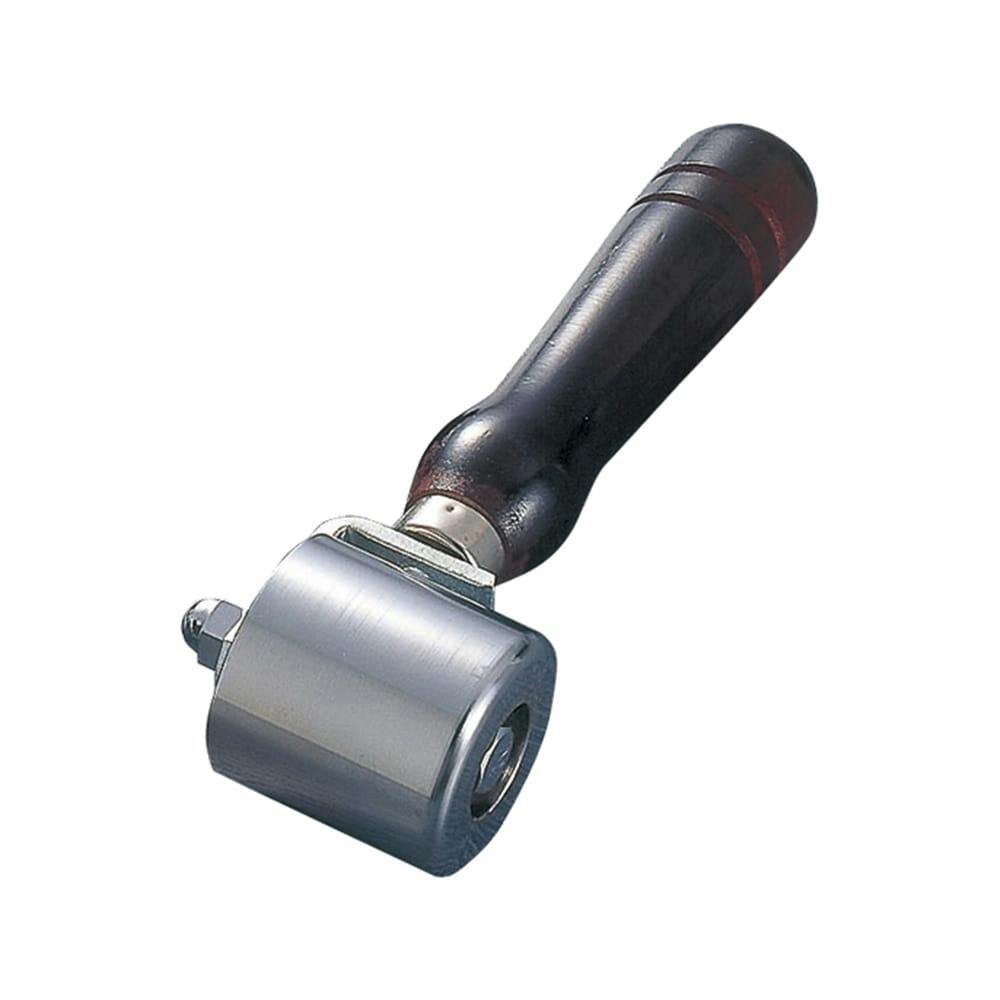 手作業用のローラーとしては従来の倍以上の重量で、床材を押さえるときにあまり力を入れる必要がありません、R付きで壁を傷つける心配がへります