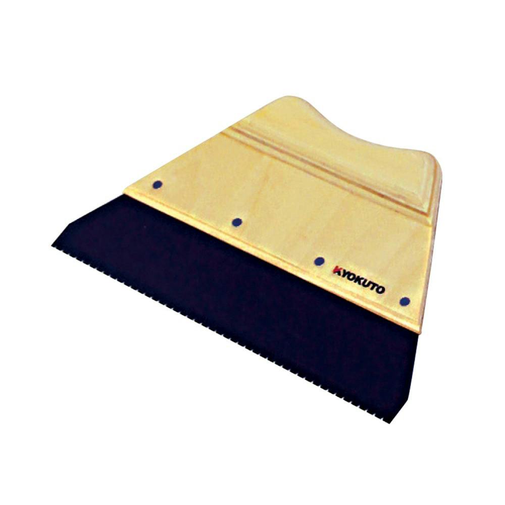 ハガネ素材でしなりが良く手首への負担が少ない糊へらです、両端の立ち上がり加工が糊逃げを防ぎます