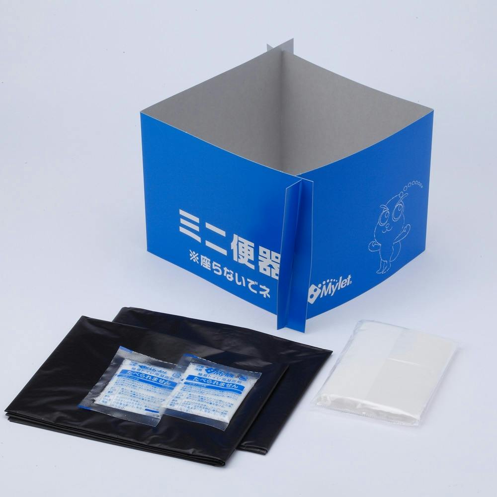 抗菌性凝固剤:2袋、ミニ便器:1個、排便袋:2袋、ポケットティッシュ:1個