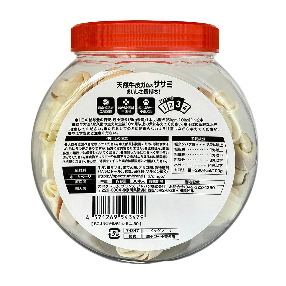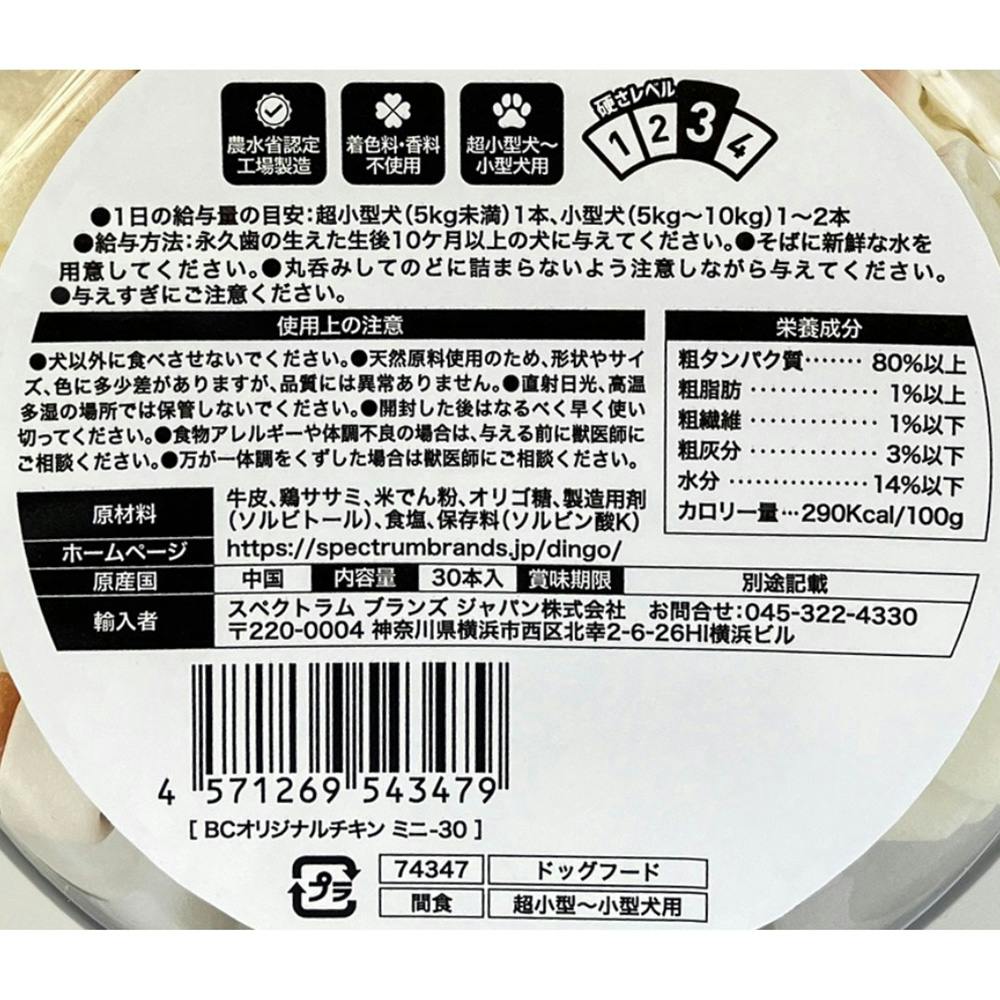 牛皮、鶏ササミ、米でん粉、オリゴ糖、製造用剤(ソルビトール)、食塩、保存料(ソルビン酸K)