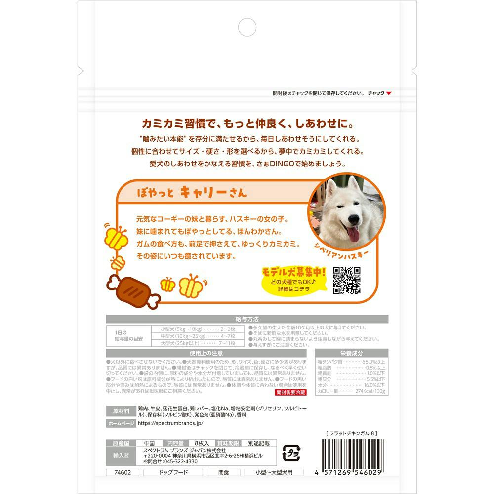 食べやすく、しっかり噛める形を追求!長く噛むことで歯の汚れを落とします。上質なチキンの正肉のみ使用。 程よい弾力&噛み応え抜群の牛皮。 チキンの旨みが牛皮に染み込んで最後までおいしい。