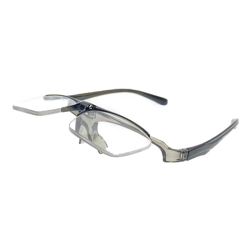 跳ね上げ式なので一日中掛けっぱなしで使用できます。ワンタッチで上げ下げでき遠くも近くもよく見えます。