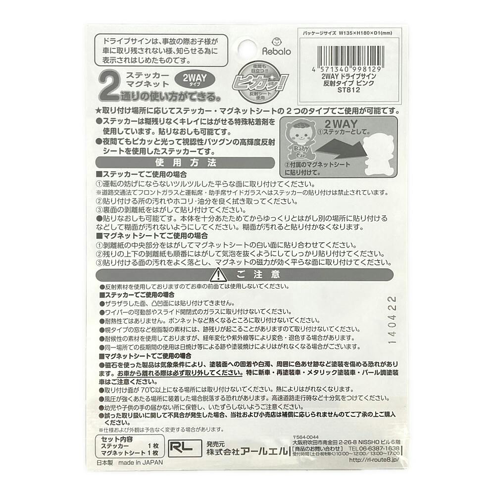 アールエル 2WAY ドライブサイン 反射タイプ ピンク ST812