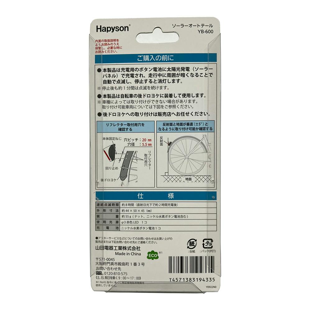 Hapyson ソーラーオートテールライト ダークグレー YB-600 YF-1282