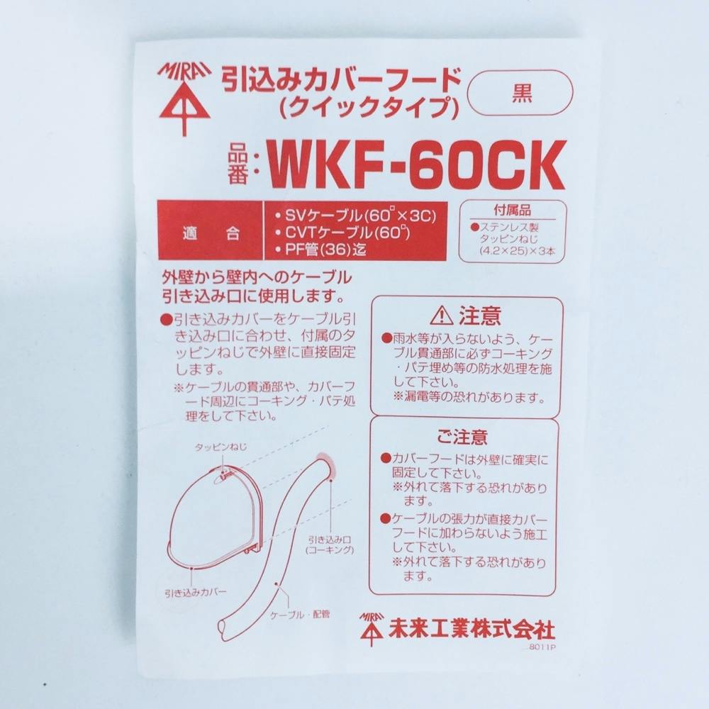 未来工業 引込みカバーフード 黒 WKF-60CK