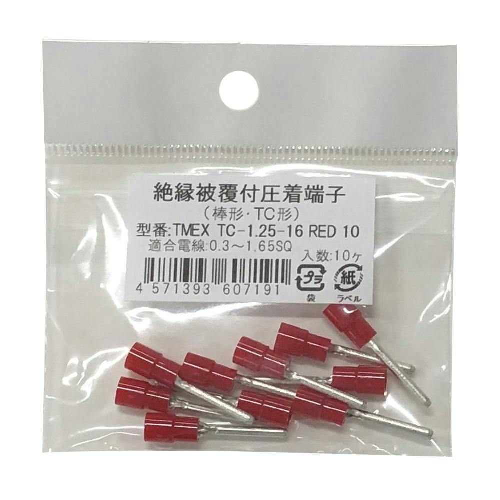 ニチフ 絶縁被覆付棒端子 TC形 赤 TMEX TC-1.25-16-RED 10個入