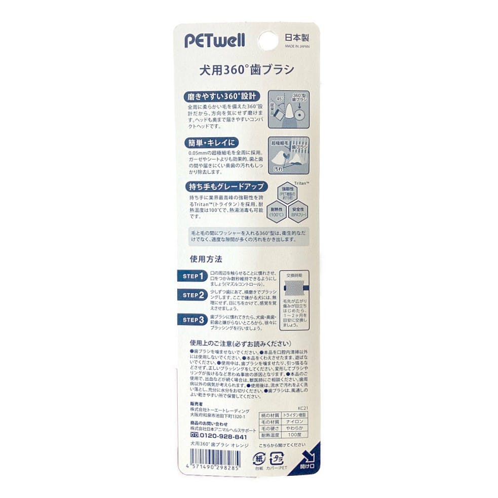 犬用360°歯ブラシ オレンジ 1本