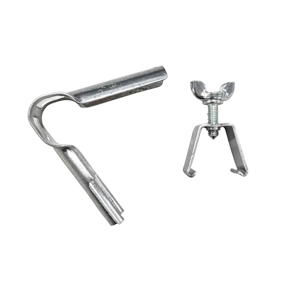 フックナットについているネジの先がとがっているので取付時にネジ部分がパイプに喰い込み強力に固定できますのでハウスの端末部分に最適です。