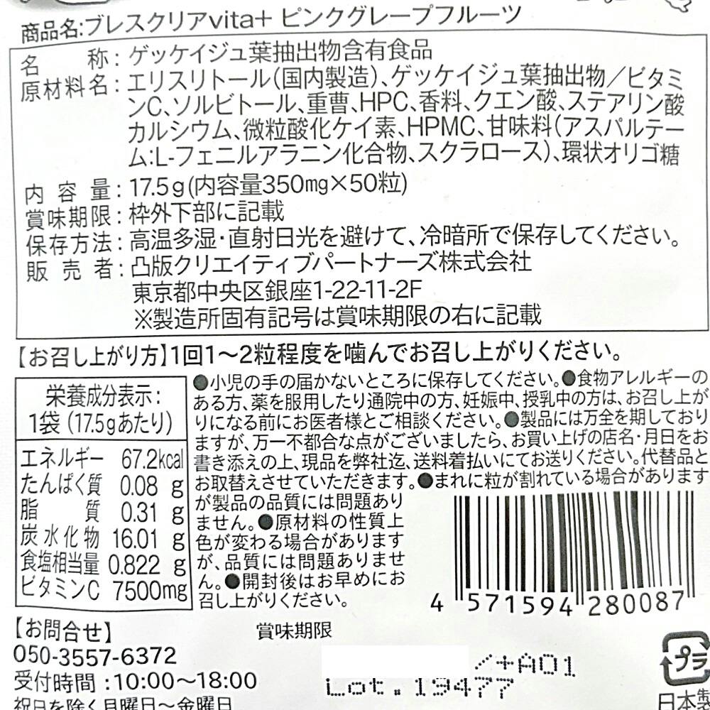 ブレスクリア vita+ ピンクグレープフルーツ 50粒