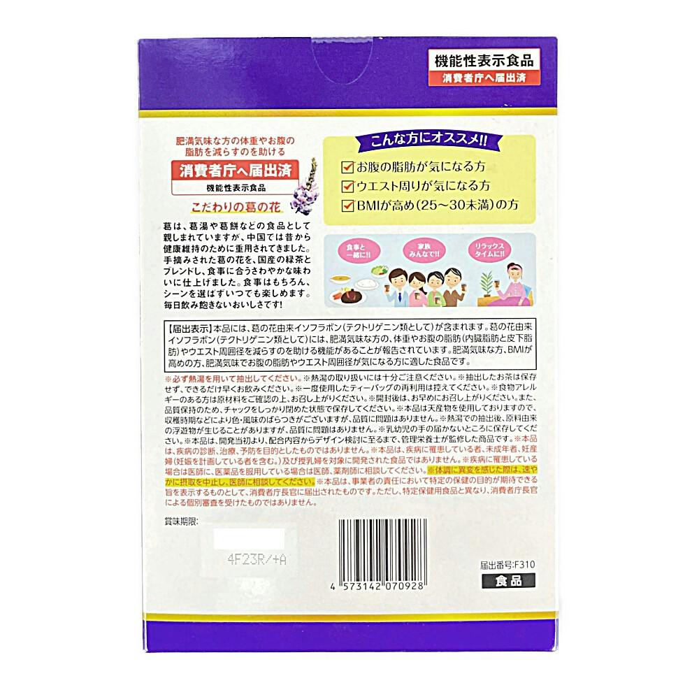 ●肥満気味の方の体重やお腹の脂肪を減らすのを助ける●緑茶入りで飲みやすい!!●手摘み葛の花使用●食事にも合うさわやかな味わい●香料・甘味料・着色料無添加。等
