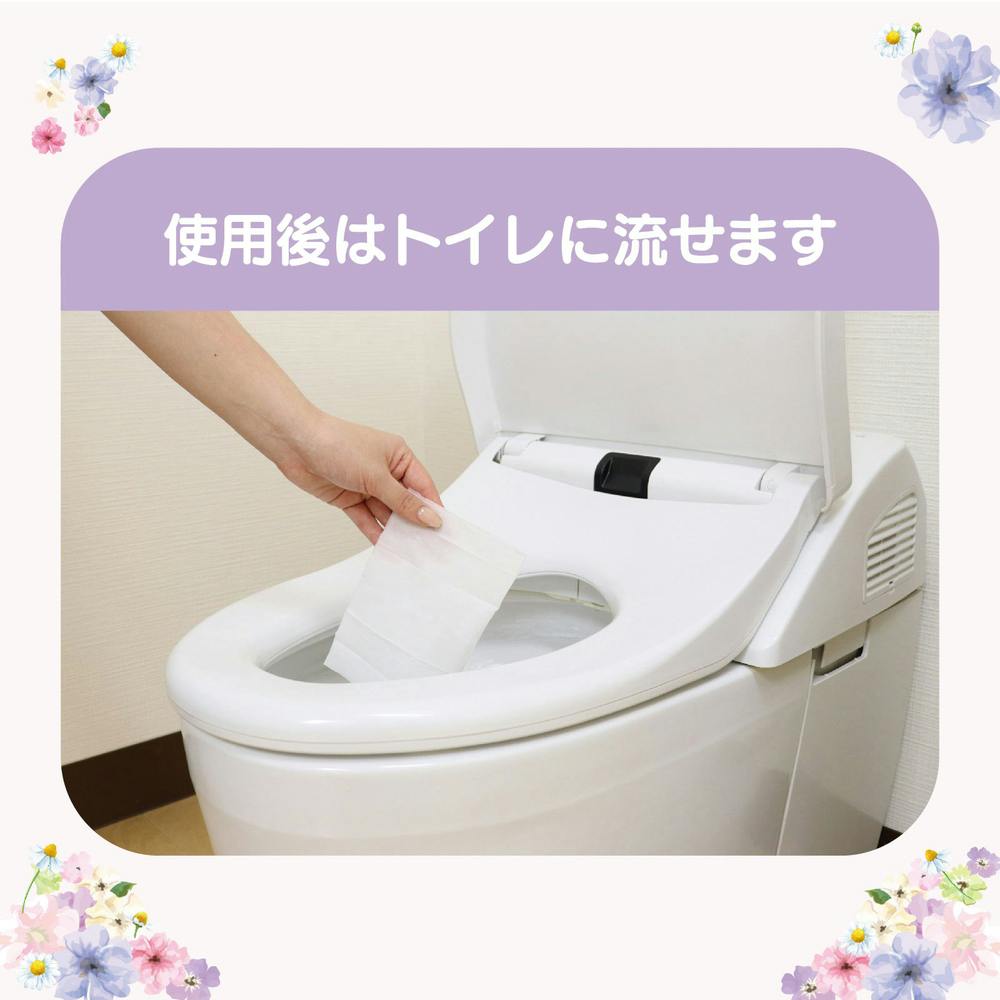 ●トイレのつまりを防ぐため、必ず1枚ずつ流してください。 ●大の水量で流してください。 ●お肌に異常が生じていないかよく注意して使用してください。お肌に合わない場合には使用をやめてください。