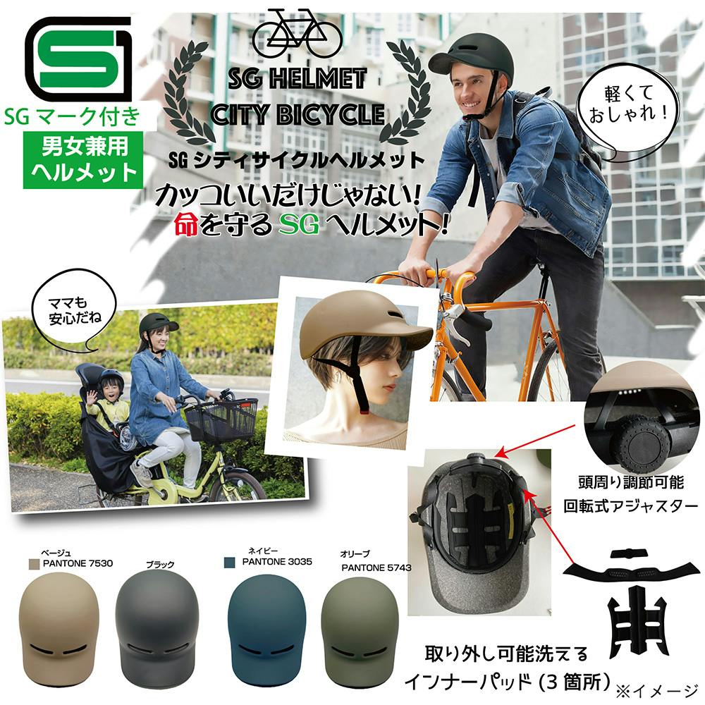 落ち着いたマットカラーの男女兼用ヘルメット。SG認証取得。軽くておしゃれなヘルメットです。