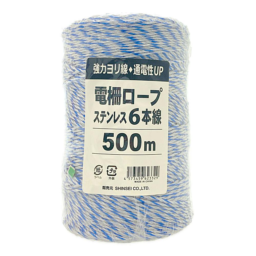 電柵ロープ ステンレス 6本線 高通電 青白 500m