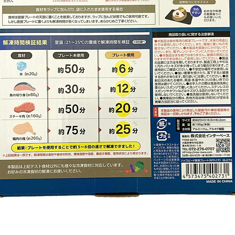 ●本製品は食材専用の解凍プレートです。本来の用途以外では使用しないでください。また、極端に重いものを載せないでください。●本製品を直接火にかけないでください。また、電子レンジ・オーブンに入れないでください。●本製品はまな板ではありません。など