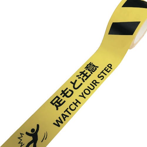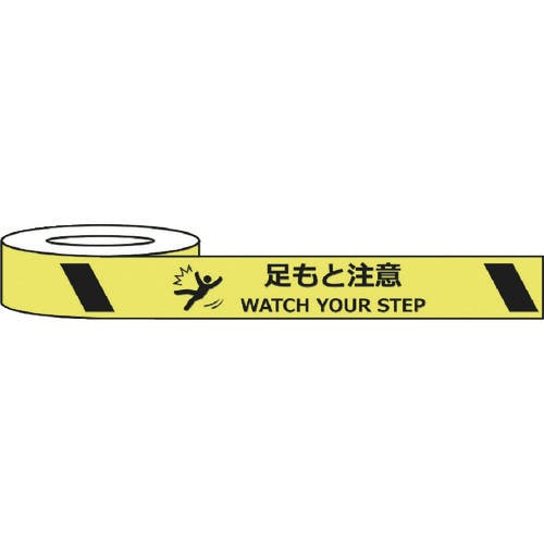 【CAINZ-DASH】セーフラン安全用品 耐摩耗標識テープ 75mm×22m 足もと注意 WATCH YOUR STEP J0035【別送品】