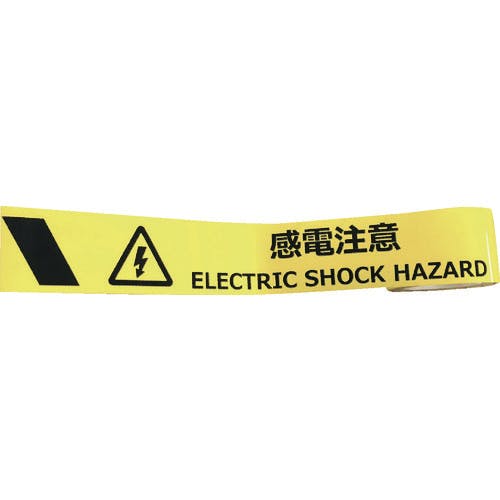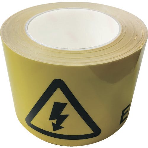 【CAINZ-DASH】セーフラン安全用品 耐摩耗標識テープ 75mm×22m 感電注意 ELECTRIC SHOCK HAZARD J0037【別送品】
