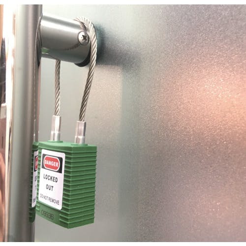 【CAINZ-DASH】セーフラン安全用品 ロックアウト用ケーブルパドロック 緑 14688-1【別送品】
