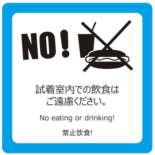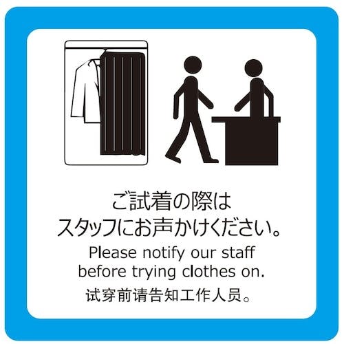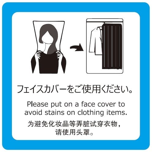 お忘れものにご注意ください。フェイスカバーをご使用ください。ご試着の際はスタッフにお声かけください。靴を脱いでおあがりください。試着室内での飲食はご遠慮ください。禁煙。
