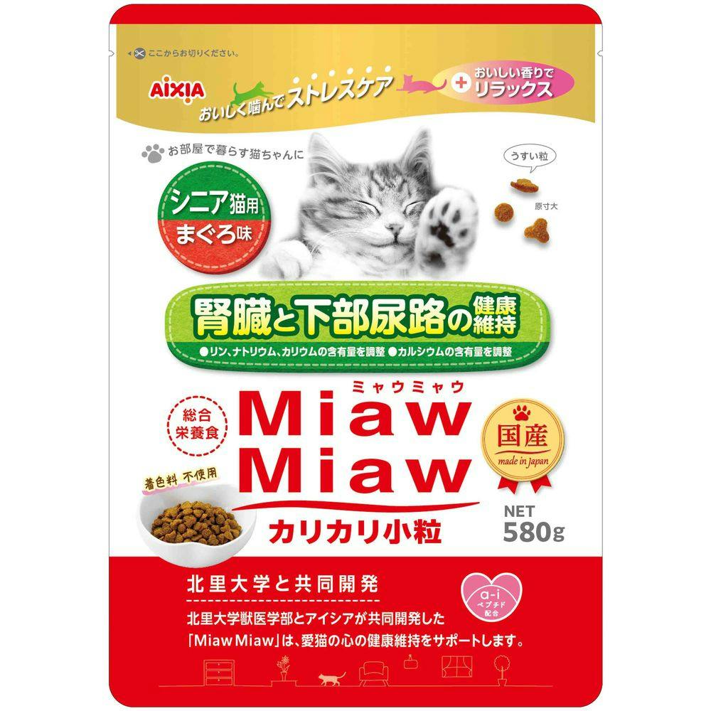 アイシア MiawMiaw シニア猫用 まぐろ味 腎臓と下部尿路の健康維持 カリカリ小粒 580g