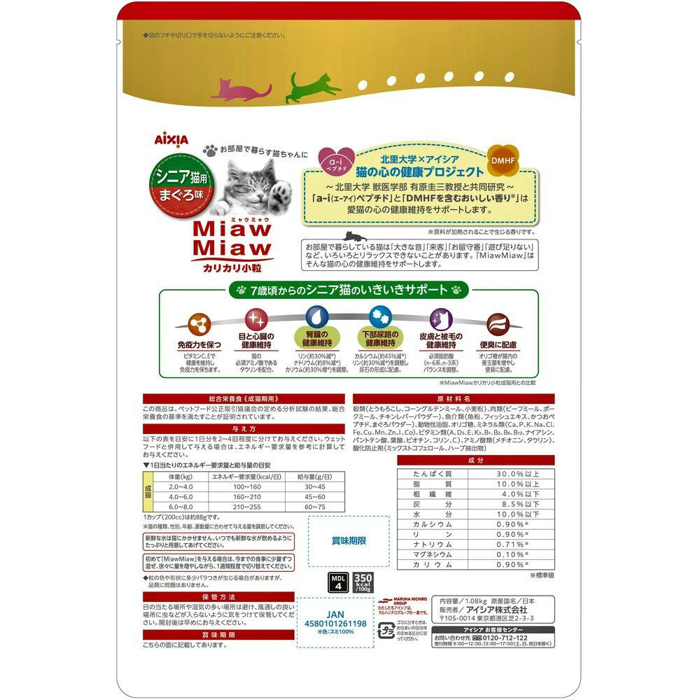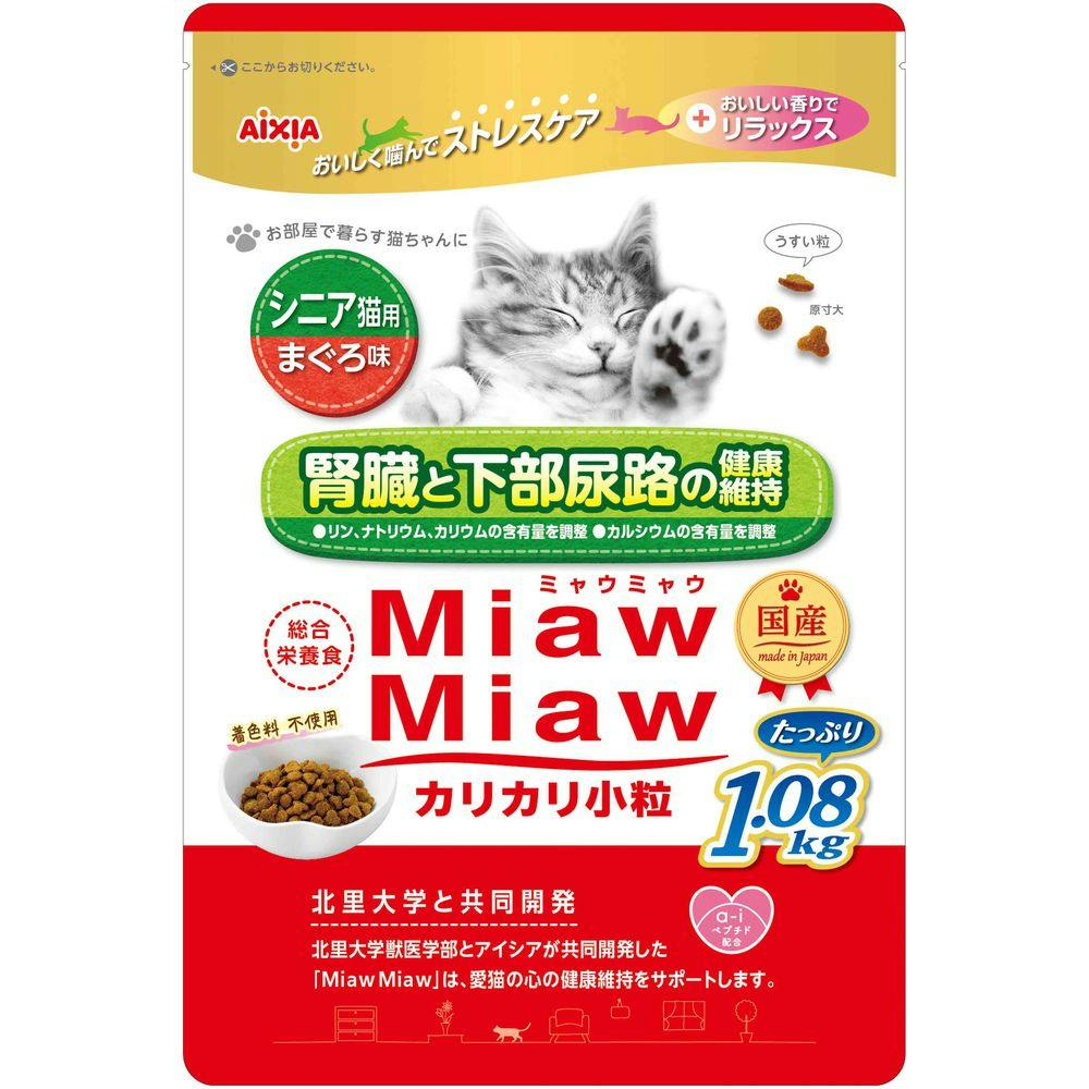 アイシア MiawMiaw シニア猫用 まぐろ味 腎臓と下部尿路の健康維持 カリカリ小粒 1.08kg