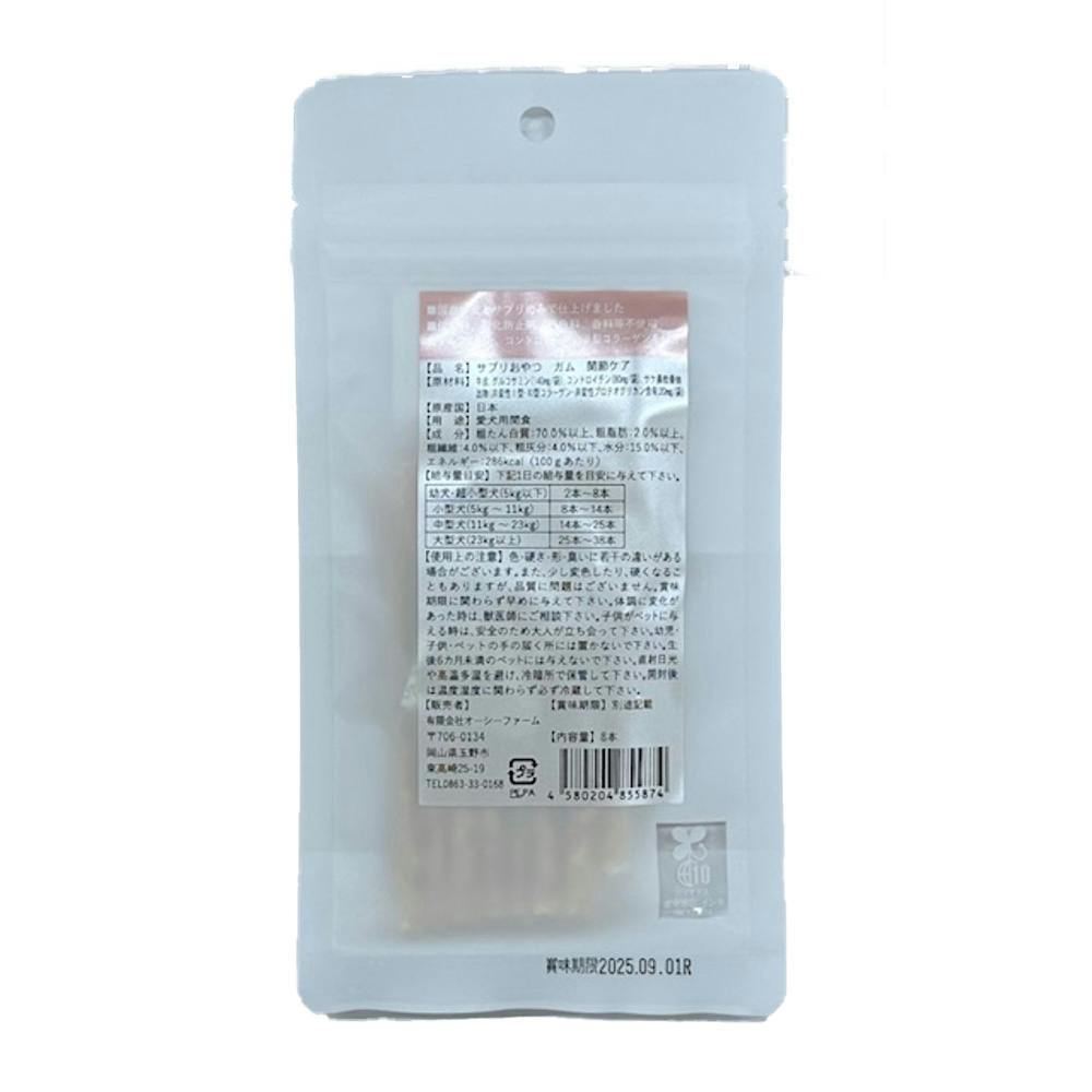 "●国産の牛皮使用 ●保存料、酸化防止剤、着色料、香料等不使用 ●グルコサミン、コンドロイチン、Ⅱ型コラーゲンを配合"
