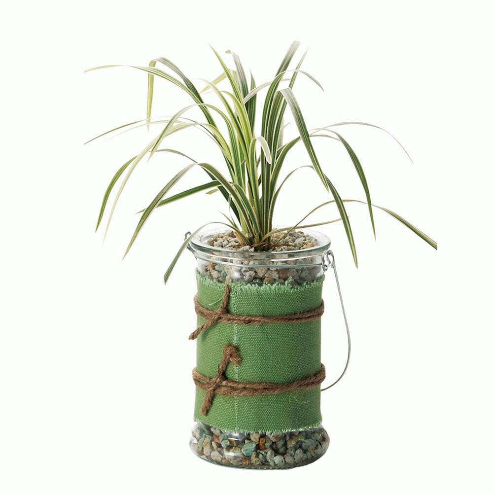 ガラスベースに、色のついた布を巻いています。窓辺やテーブルなどに置いて楽しめます。