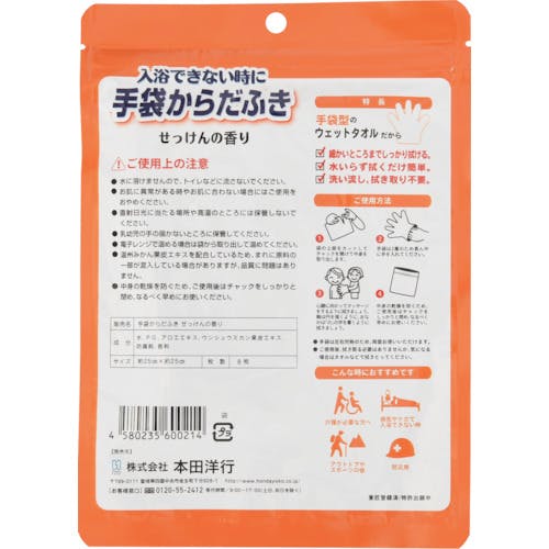 【CAINZ-DASH】本田洋行 手袋からだふき 8枚入 せっけんの香り D00013【別送品】