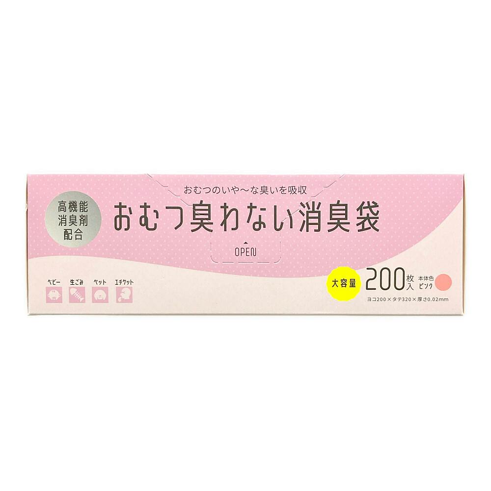 おむつ臭わない消臭袋 大容量 200枚入 ピンク