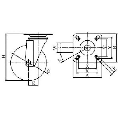 【CAINZ-DASH】ユーエイ キャスター事業部 プレート式 自在 ステンレスキャスター ナイロン 車輪径130mm Jタイプ SUS-J型 取付寸法82×82(75×75) SUS-NJ-130【別送品】