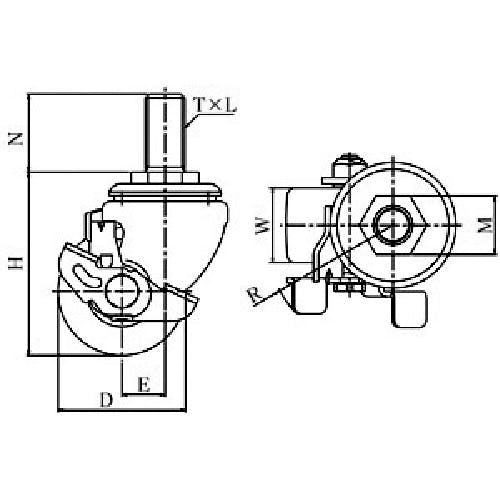 【CAINZ-DASH】ユーエイ キャスター事業部 ねじ込み式 自在 低床キャスター 強化ナイロン 車輪径50mm ストッパー付き Hタイプ HT-S型 ネジ寸法M16×40ピッチ2 HT-50GNBS-M16-40【別送品】