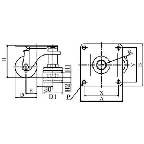 【CAINZ-DASH】ユーエイ キャスター事業部 プレート式 自在 アジャスター付キャスター 黒ナイロン 車輪径50mm AFタイプ E-AF型 取付寸法64×64 E-50BN-AF【別送品】