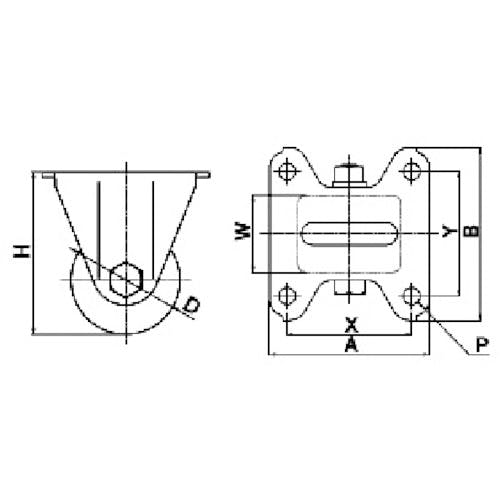 【CAINZ-DASH】ユーエイ キャスター事業部 プレート式 固定 低床キャスター 強化ナイロン 車輪径50mm Hタイプ UHR型 取付寸法64×64 UHR-50GFB【別送品】